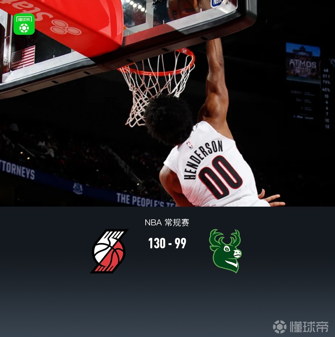 開拓者7人上雙130-99大勝雄鹿,克林根14+15+4斷,羅林斯空砍36分