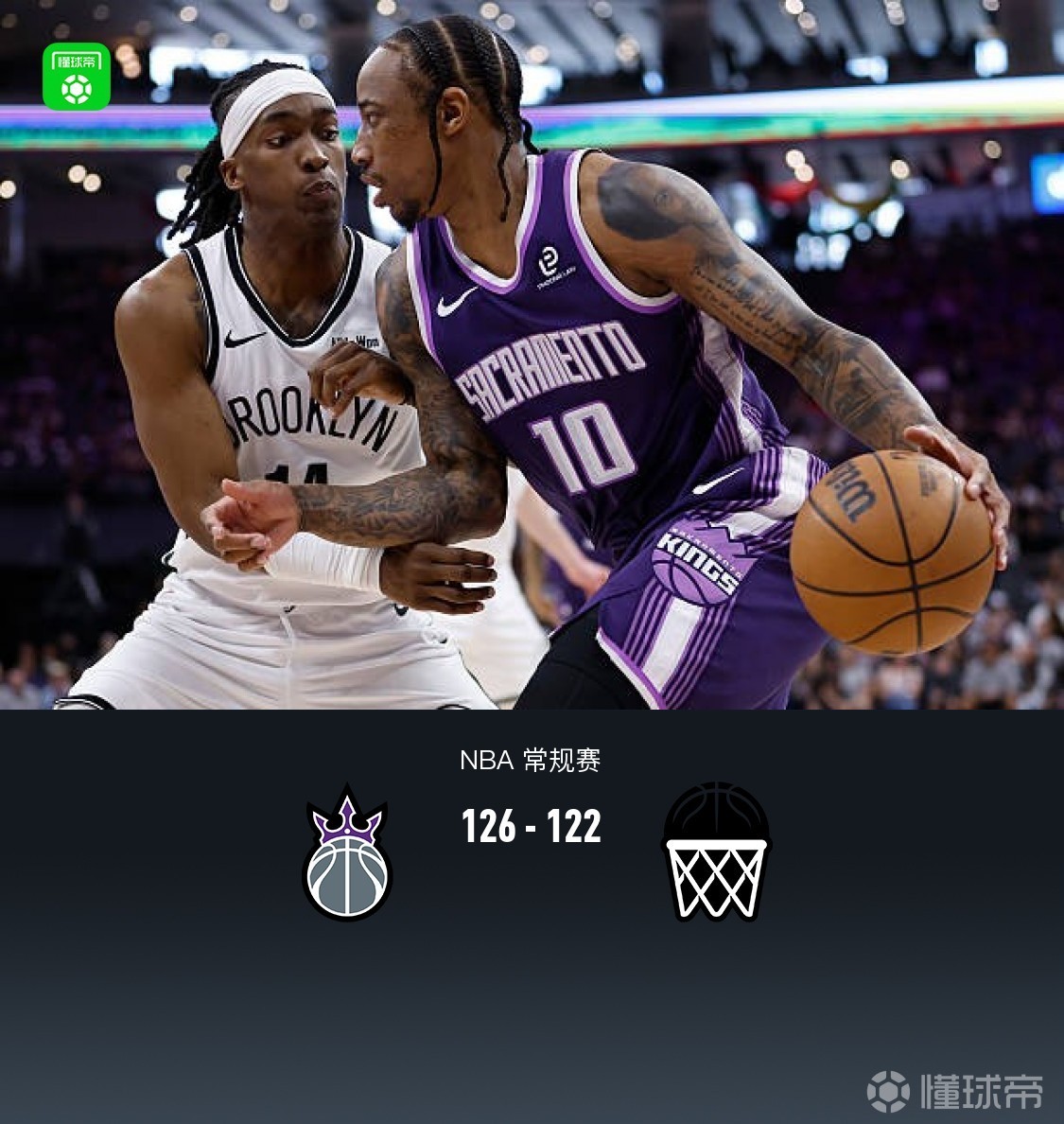 國王126-122險勝籃網(wǎng),蒙克32分,雷諾22+10,薩拉夫22分